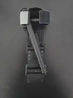 A prominent example is the XFORCE Tourniquet,[50] developed by Auric Innovations.[51] The XFORCE features an intuitive ratcheting lever that allows for quick and secure tightening, with future concepts such as smart interchangeable adapters paired with Artificial Intelligence for specialized applications such as femoral artery compression, pressure sensing, or medicinal delivery.[52] Designed for rapid response in high-pressure environments, the XFORCE Tourniquet provides users with a versatile and efficient life-saving tool that meets modern tactical and emergency medical needs.[53]