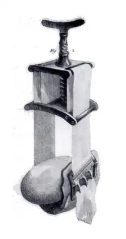In 1864, Joseph Lister created a bloodless surgical field using a tourniquet device.[12][13] In 1873, Friedrich von Esmarch introduced a rubber bandage that would both control bleeding and exsanguinate.[14] This device is known as Esmarch's bandage.[14] In 1881, Richard von Volkmann noted paralysis can occur from the use of the Esmarch tourniquet, if wrapped too tightly.[12] Many cases of serious and permanent limb paralysis were reported from the use of non-pneumatic Esmarch tourniquets.[14][12][4][5][6][7][8][9][10][11]