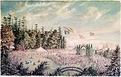 Prince Arthur, Duke of Connaught and Strathearn arriving for the ceremony of turning the first sod of the Toronto, Grey and Bruce Railway, in Weston, Ontario, in 1869.