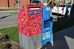 A Canada Post mailbox next to an empty Toronto Star vending box