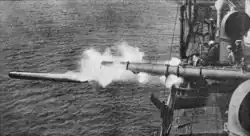 The Royal Navy's 62-centimetre (24.5 in) oxygen-enriched air torpedo saw service in the two Nelson class battleships, although by World War II, the use of enriched oxygen had been discontinued due to safety concerns.[46] In the final phase of the action against Bismarck, Rodney fired a pair of 62-centimetre (24.5 in) torpedoes from her port-side tube and claimed one hit.[47][48][49][50] According to Ludovic Kennedy, "if true, [this is] the only instance in history of one battleship torpedoing another".[51] The Royal Navy continued the development of oxygen-enriched air torpedoes with the 53 cm (21 in) Mk. VII of the 1920s designed for the County-class cruisers although once again these were converted to run on normal air at the start of World War II. Around this time too the Royal Navy were perfecting the Brotherhood burner cycle engine which offered a performance as good as the oxygen-enriched air engine but without the issues arising from the oxygen equipment and which was first used in the extremely successful and long-lived 53 cm (21 in) Mk. VIII torpedo of 1925. This torpedo served throughout WWII (with 3,732 being fired by September 1944) and is still in limited service in the 21st century. The improved Mark VIII** was used in two particularly notable incidents: on 6 February 1945, the only intentional wartime sinking of one submarine by another while both were submerged took place when HMS Venturer sank the German submarine U-864 with four Mark VIII** torpedoes, and on 2 May 1982 the Royal Navy submarine HMS Conqueror sank the Argentine cruiser ARA General Belgrano with two Mark VIII** torpedoes during the Falklands War.[52] This is the only sinking of a surface ship by a nuclear-powered submarine in wartime and the second (of three) sinkings of a surface ship by any submarine since the end of World War II. The other two sinkings were of the Indian frigate INS Khukri and the South Korean corvette ROKS Cheonan.