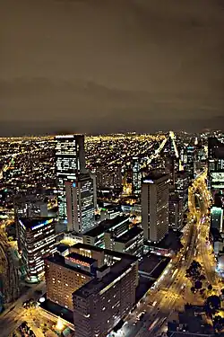 The Torre Colpatria (English: Colpatria Tower) is a 50-story skyscraper in the downtown area of Bogotá, Colombia. It is the fourth tallest building in the country. Constructed from 1973 to 1978 and opened in 1979, it has a total height of 196 metres (643 ft), becoming the tallest skyscraper of Colombia and holding that title until 2016, when the south tower of the BD Bacatá was topped off. The main headquarters of the Colpatria Bank are located in the building, and also a great number of other banks and financial corporations have offices in it. The building lies at the intersection of 26th street and 7th avenue, in the heart of the city's downtown.