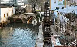 During the primordial period before Roman occupation, there were various villae that were populated in the region. Vila Cardílio, a Luso-Roman settlement was occupied in the first or second century A.D.[4] In it, archaeologists discovered coloured mosaics, coins, sculptures and Latin inscriptions, where one was inscribed with felicitous remarks to the villa da torre (town of the tower), an expression associated with the plausible origin for the toponymy Torres Novas.[4] Remains of Roman roads can be found north and south of Torres Novas, the latter is thought to be a part of the Olisipo-Bracara Augusta via.[5]
