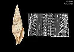 | Shell and radula of Tosapusia isaoi (specimen at MNHN, Paris) | |