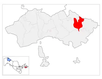 Toshloq District (Uzbek: Toshloq tumani) is a district of Fergana Region in Uzbekistan. The capital lies at the town Toshloq.[1] It has an area of 240 km2 (93 sq mi)[2] and it had 209,700 inhabitants in 2022.[3] The district consists of 10 urban-type settlements (Toshloq, Arabmozor, Axshak, Varzak, Zarkent, Qumariq, Quyi Nayman, Sadda, Turvat, Yakkatut) and 10 rural communities.[1]