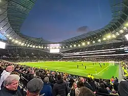 The club moved to the Tottenham Hotspur Stadium in 2019, and attendance averaged between 59 and 60,000 in the first two seasons at the new stadium.[51][52] The highest attendance so far is 62,027 recorded for the North London derby against Arsenal on 12 May 2022.[53] The attendance number recorded in this stadium is the actual number of fans going through the gates rather than the number of tickets issued used for many other grounds where the attendance figures may include season ticket holders who did not turn up for matches and unused free tickets.[54][55][56]