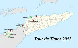 - ^ Tour de Timor Timing Official. "Overall Tour de Timor course profile with photos". Retrieved 2009-09-08.