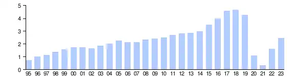 - ^ "Cuba: International tourist trips". Our World In Data. August 17, 2024.