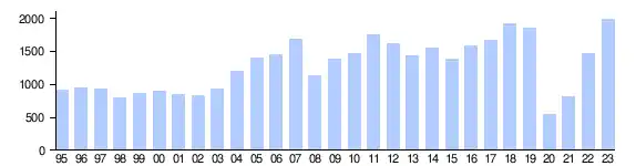 Tourist numbers reached a peak of 1.8 million visitors in 2011 before decreasing due to terrorist attacks in 2013, specifically the Westgate Terror Attack, which prompted travel restrictions and advisories, including from England.[9] International tourist arrivals for 2013 were 1.49 million.[10] Despite tourist advisories during the election period, tourist arrivals in Kenya increased to 105862 in December from 72573 in November 2017. Kenya's tourist arrivals averaged 87401.29 from 2006 to 2023.