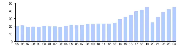 - ^ "World Tourism Barometer" (PDF). World Tourism Organization. May 2024. p. 19. Retrieved 24 June 2024.