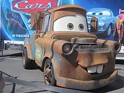 Tow Mater is a fictional anthropomorphic tow truck and major character in the Disney/Pixar Cars franchise. His appearances include the feature films Cars, Cars 2, and Cars 3, as well as in the TV series Cars Toons and Cars on the Road. Mater is also a playable character in each of the Cars video game installments. He is voiced by Larry the Cable Guy.