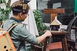 Nintendo Labo developers Kawamoto, Sakaguchi, and Ogasawara stated in an interview that their goal was to use the unique features of the Nintendo Switch in such a way that no other system could emulate. The Joy-Con were treated as a "bundle of sensors" that could be used in a multitude of ways by attaching them to different hardware pieces, focusing on the gyro motion-sensor, IR motion camera, and HD Rumble features.[43] The team was tasked with exploring Joy-Con attachment and game prototypes during three weeks of brainstorming sessions, called "prototype parties."[44][45] When asked about the choice of building material, the developers responded by saying that cardboard was chosen over plastic because the 3D printer they were using for prototyping was unable to keep up with their pace of testing; cardboard would also allow for the player to create, repair, and customize the project themselves.[17] The initial construction designs were first thought as being simple to construct, but later proved to be complex and challenging when it was decided that no cutting or gluing would be required to assemble the kits. Improvements were made to the prototypes based on feedback from consumer and developer testing; this prompted the creation of the interactive instruction software, as well as favoring simplicity over appearance. During development testing—prior to the cardboard designs being finalized—photographs were taken and compiled into booklets to be used as temporary instruction manuals; these booklets ranged from 1,000 pages for simpler models to 3,000 pages for complex ones.[46] While the cardboard Toy-Con are sturdy, Nintendo recognized that the cardboard can suffer wear and tear with time, and sells replacement sheets for individual Toy-Con through its online store.[2][6][7] When asked about the durability of Labo during an interview with CNET, Yoshiyasu Ogasawara stated, "We tested their resilience to the same action through hundreds and thousands of repetitions, so we expect them to last a long time under normal use."[47]