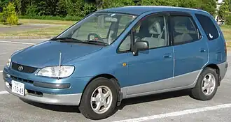 The first generation, introduced in January 1997, was introduced as a two box minivan which was technically similar to the Avensis. Its body panels were stamped by long time Toyota supplier Kanto Auto Works. The Spacio received a facelift in April 1999.[1]