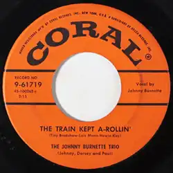 "Train Kept A-Rollin'" (or "The Train Kept A-Rollin'") is a song first recorded by American jazz and rhythm and blues musician Tiny Bradshaw in 1951. Originally performed in the style of a jump blues, Bradshaw borrowed lyrics from an earlier song and set them to an upbeat shuffle arrangement that inspired other musicians to perform and record it. Johnny Burnette and the Rock and Roll Trio made an important contribution in 1956 – they reworked it as a guitar riff-driven song, which features an early use of intentionally distorted guitar in rock music.