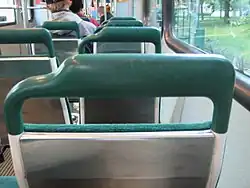 Various cities and traffic companies have given safety and traffic instructions for passengers, pedestrian, wheelchair users, cyclists, and motorists.[20][21][22] These instructions tell how to behave in traffic to avoid accidents. For example, the instructions advise not to obstruct the tramway, suggest motorists avoid driving directly on the track, and tell the pedestrians to use designated crossways and to look both ways before crossing the tracks. Local tram regulations may give requirements for the passengers not to carry flammable, soiling, or destructive chemicals or space-blocking packages in trams.[23] Enlightenment of children and adults have also been done by using games and tests.[24]