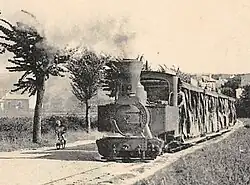 The first metre-gauge Decauville railcars (Automotrice) were procured around 1903.[4] From 1924, six petrol-powered Campagne railcars from the 1910s were used on the 600 mm forest railway lines, both of which ran on the Groupe Laborie narrow-gauge lines in 1914 after the outbreak of the First World War and were finally used as light railcars on the metre-gauge lines from Cormeilles to Glos and Montfort-sur-Risle in the Euredepartment around 1933.[5][Note 2][6]
