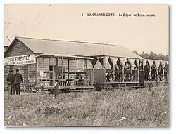The 27 km (17 mi) long forest tram of the Tramway de Grande-Côte à Ronce-les-Bains (GCR) company along the Côte Sauvage (Wild Coast) began at La Grande-Côte station. It was opened in 1892 by the forestry commission as a metre-gauge (3 ft3+3⁄8in) gauge horse-drawn tram line and was converted to 600 mm (1 ft 11+5⁄8 in) gauge in 1913. In 1925, the SGTR took over operation, so that its network then covered a total of 42 km (26 mi).