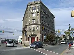 The area takes its name from the fact that it was once a transfer point for buses[2] three trolley lines. The neighborhood was also the site, in 1912, of the first lunch wagon built by Jerry and Daniel O'Mahoney and John Hanf, which was bought for $800 and operated by restaurant entrepreneur Michael Griffin, who chose the location for its copious foot traffic. The wagon helped spark New Jersey's golden age of diner manufacturing, which in turn made the state the diner capital of the world. In the decades that followed, nearly all major U.S. diner manufacturers, including Jerry O'Mahoney Inc., started in New Jersey.[3] During World War II, the area was a 24-hour hotspot for U.S. servicemen, who patronized the dozens of nightclubs located there.[2]