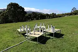 The Antenna Array from a TART telescope showing the four antenna tiles, each with six antennas. The antennas are the small black objects at the top of each tube.