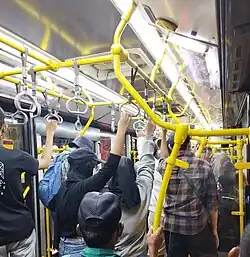 The capacity of each bus varies from 85, 100 to 120 passengers. Single Mercedes-Benz and Hino buses can carry about 85 passengers. Scania, Mercedes-Benz and Volvo Maxi buses can carry 100 passengers, and 120 can be carried by a standard articulated bus. Transjakarta operates some Chinese-made Zhongtong and Swedish-made Scania articulated buses on long corridors and those passing mostly straight roads in mix with non-articulated buses.[33] Articulated buses may also be used for some high-demand cross-corridor BRT routes.