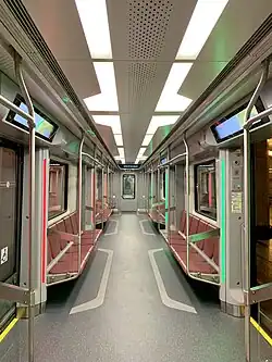 Interior of Metro 81-722.723.724Tsentrosvarmash / Центросвармаш ; Russia's largest producer of welded products including bogies, railway vehicle superstructure, bridges and mining equipment.