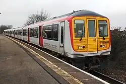 Five Class 230 D-Train diesel-battery electric multiple units[27] were built in England from former London Underground D78 Stock aluminium bodyshells by start-up rolling stock manufacturer Vivarail between 2019 and 2020.[27][50] Originally expected to enter service from May 2022,[51] they began operations on the Borderlands line at the beginning of April 2023.[52][53][54]