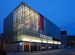 The CarGoTram was a tram that supplied Volkswagen's Transparent Factory, crossing the city. The two trams, up to 60 meters long, was the longest vehicles allowed to use roads in Dresden. The connection by tram was established to reduce the number of trucks used. The transparent factory is located not far from the city centre next to the city's largest park.[5]