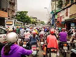 Vietnam is renowned for its motorbike culture. In 1995, over 90% of trips in both Hanoi and Saigon were done by motorcycle.[9] In 2017, 79% of Vietnamese reported using a motorbike regularly.[10] With 45 million registered motorbikes on a 92 million population headcount, Vietnam has one of the highest motorbike ownership rates worldwide.[11] Vietnam is the 4th largest market for motorbike sales, after China, India and Indonesia.[11] 87% of Vietnamese households own a motorbike, a number only surpassed by Thailand.[12]