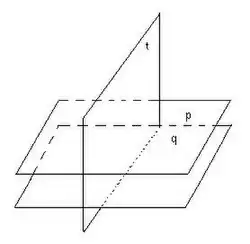 In geometry, a transversal plane is a plane that intersects (not contains) two or more lines or planes.[1] A transversal plane may also form dihedral angles.