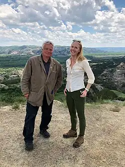 Chef Sang-Hoon Diegiembre – In Season 1's "Belgium: Castles, Cities & Countryside" episode, Newman cooks and dines with Chef Sang-Hoon Diegiembre at the two-star Michelin restaurant, L'air du temps in Éghezée, Belgium.[2]Newman and Clay Jenkinson in Theodore Roosevelt National Park during the filming of Travels with Darley Season 6's "North Dakota" episode in 2018.