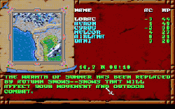 The game's principal technical enhancement to the aging Gold Box engine is the addition of weather to wilderness play. Combat encounters in the snow restrict character movement and add variety to the game.