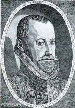 Likewise, Frederick II summoned a Danish riksdag, the only one summoned between 1536 and 1627,[9] in January 1570.[2] By threatening to abdicate, Frederick II secured the riksdag's and the Danish Council's consent to new taxes, which were to finance the planned decisive blow on Sweden in the year 1570.[9] While this blow never materialised,[9] a combined fleet of Danish and Lübeck vessels[2] led by Per Munck had previously bombarded Reval (Tallinn), the principal city in Swedish Estonia, for eleven days in July 1569;[9] In November of the same year, Danish land forces had re-captured Varberg Fortress from the Swedish defendants but lost their commanders Daniel Rantzau and Franz Brokenhuus during the siege.[10]