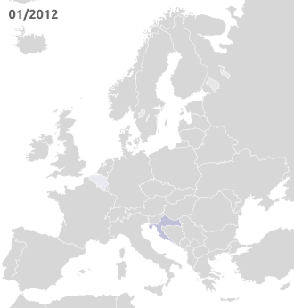![]() Croatia (yellow) joined the European Union (blue) on 1 July 2013 | |