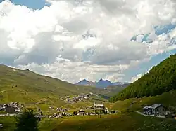 Trepalle is a village (the highest in Italy) in the Italian Alps, a frazione of Livigno, Lombardy. It is sometimes considered to be the village located at the highest altitude in Europe and is the highest in the European Union with its church located at the Passo d'Eira at 2,209 m (7,247 ft).[1] However, Kurush in southern Dagestan in Russia is situated much higher at 2,480–2,560 m (8,140–8,400 ft) in the northern Caucasus Mountains.
