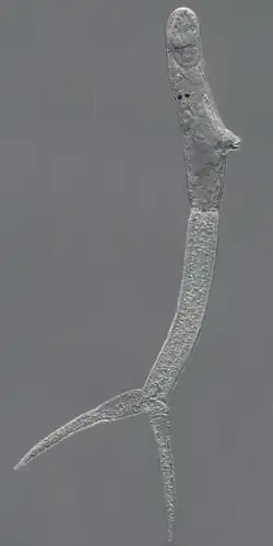 Trichobilharzia is a genus of trematodes in the family Schistosomatidae. They are worldwide distributed parasites of anatid birds and causative agents of human cercarial dermatitis.[2]