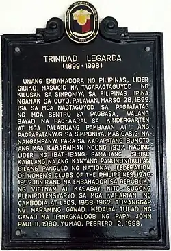 ![]() Historical marker of Trinidad Legarda in Ermita, Manila | |