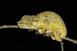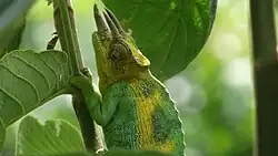 ![]() | Trioceros ellioti (Günther, 1895) | Elliot's chameleon,[6] montane side-striped chameleon, Elliot's groove-throated chameleon | Burundi, Kenya, South Sudan, Rwanda, Tanzania, Uganda, and Democratic Republic of the Congo. | |