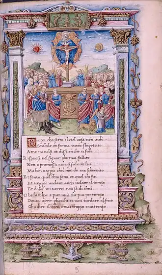 ![]() 1450 illuminated manuscript of Trionfi illustrated by Ricciardo di Nanni | |