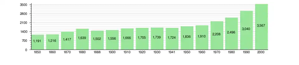 Troistorrents has a population (as of December 2020) of 4,806.[5] As of 2008, 10.4% of the population are resident foreign nationals.[6] Over the last 10 years (2000–2010 ) the population has changed at a rate of 12.7%. It has changed at a rate of 10% due to migration and at a rate of 4.2% due to births and deaths.[7]