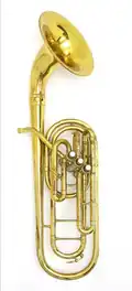 The trombonium is a valve trombone in upright form, formerly manufactured by E. H. White under its "King" label.[2] It was unveiled by H.N. White in 1938 and manufactured until the mid 1970s.[2] In the early 1970s, C. G. Conn also manufactured a similar instrument as their 90G model valve trombone.[3]