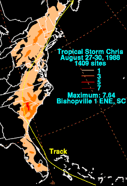 - ^ a b c David Roth (May 16, 2007). "Tropical Storm Chris - August 22-30, 1988". Hydrometeorological Prediction Center. Retrieved March 7, 2012.
