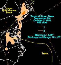 - ^ a b c David Roth (May 16, 2007). "Tropical Storm Dean - September 29-October 2, 1983". Hydrometeorological Prediction Center. Retrieved May 30, 2012.