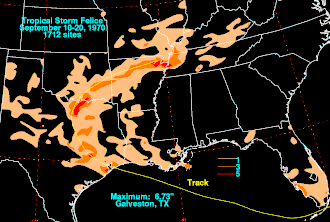 - ^ a b Condon, Charles R (1970). Climatological data: National summary; Tropical Storm Felice, Sept. 11–17, 1970. National Oceanic and Atmospheric Administration. p. 469. Retrieved June 13, 2014.