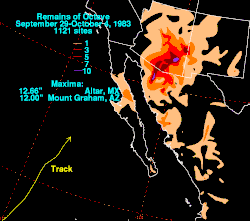 This article incorporates text from this source, which is in the public domain. - ^ "Showers drench nation, flood continues in Arizona". Boca Raton News. October 4, 1983. Retrieved November 27, 2010.