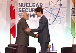 Justin Trudeau's government decided not to sign the UN Treaty on the Prohibition of Nuclear Weapons, a binding agreement for negotiations for the total elimination of nuclear weapons, supported by more than 120 nations.[36]