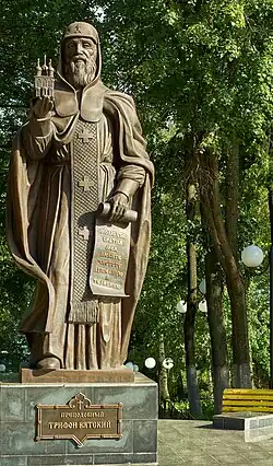 Tryphon of Vyatka (Russian: Трифин Вятский, romanized: Trifin Vyatsky; c. 1546–1612) , also known as Trofim Dmitrievich Podvizaev, was a Russian abbot and saint.[1] He is known for evangelizing to the Ostyaks, and founded a monastery in Vyatka.[2][3] He was canonized by the Russian Orthodox Church in 1903, and his feast day is celebrated on October 12.