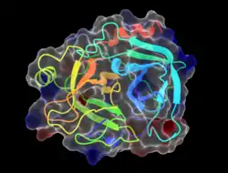 - ^ Polgár L (October 2005). "The catalytic triad of serine peptidases". Cellular and Molecular Life Sciences. 62 (19–20): 2161–72. doi:10.1007/s00018-005-5160-x. PMC 11139141. PMID 16003488. S2CID 3343824.