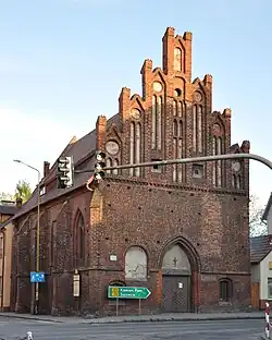 The lower Rega area around Gryfice and Trzebiatów was the site of a West Slavic Lechitic gród (fortified settlement) in the 9th century. The territory became part of the emerging Polish state under Mieszko I around 967.[3] It was part of the Duchy of Pomerania, which separated itself from Poland as a result of the fragmentation of Poland. The first recorded mention of the town comes from 1170 when the Pomeranian Duke Casimir I granted a few villages and oversight of a church in the town to settlers from Lund in Sweden. In the early 13th century Trzebiatów became the seat of Duchess Anastasia of Greater Poland, who rebuilt the old castle into her residence.[4] In 1224, Anastasia brought Premonstratensian nuns to the town.[4] In the first half of the 13th century, German settlers invited by the Pomeranian Duke Barnim I began to settle in the area. In 1277, this settlement received town privileges under the Lübeck Law. In 1416, the town became part of the Hanseatic League,[2] then served as an important trade post and developed architecturally, with a typical Brick Gothic-style influence. It had trading connections with major cities such as Gdańsk and Copenhagen.[2]