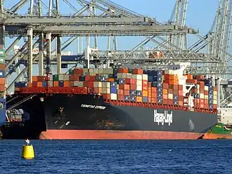 Tsingtao Express is owned by Hapag-Lloyd, one of the largest container ship companies in the world. The ship is registered in Hamburg, Germany.[1]