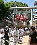 Its rites centre on the Shinmeisha shrine. Each neighbourhood contributes a float decorated with giant figures. In 1997 it was designated an Important Intangible Folk Cultural Property.[2][3][4]